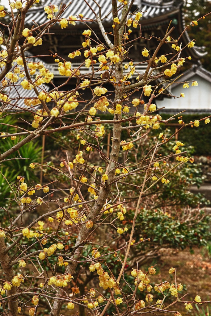 前庭の蝋梅盛りで