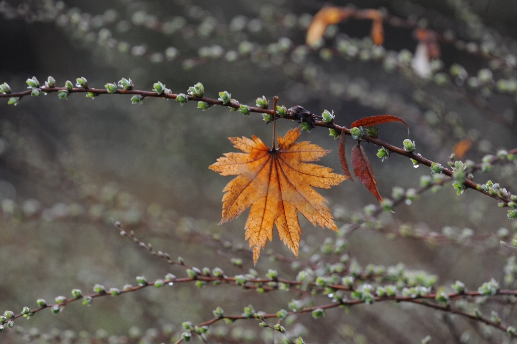 冬の名残と春の兆しが交錯している風景や