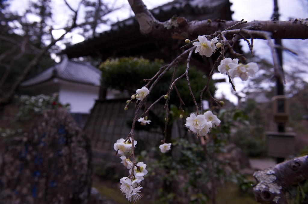 鐘撞き堂の前の白梅は楚々と咲き