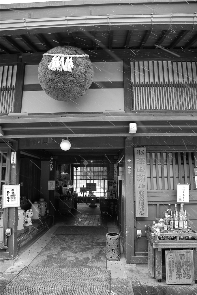 雪ふる酒どころ モノクロ