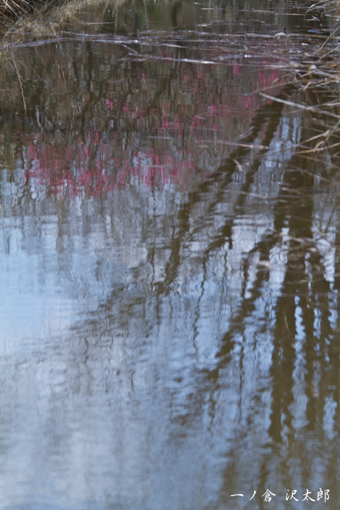 水に咲く紅梅