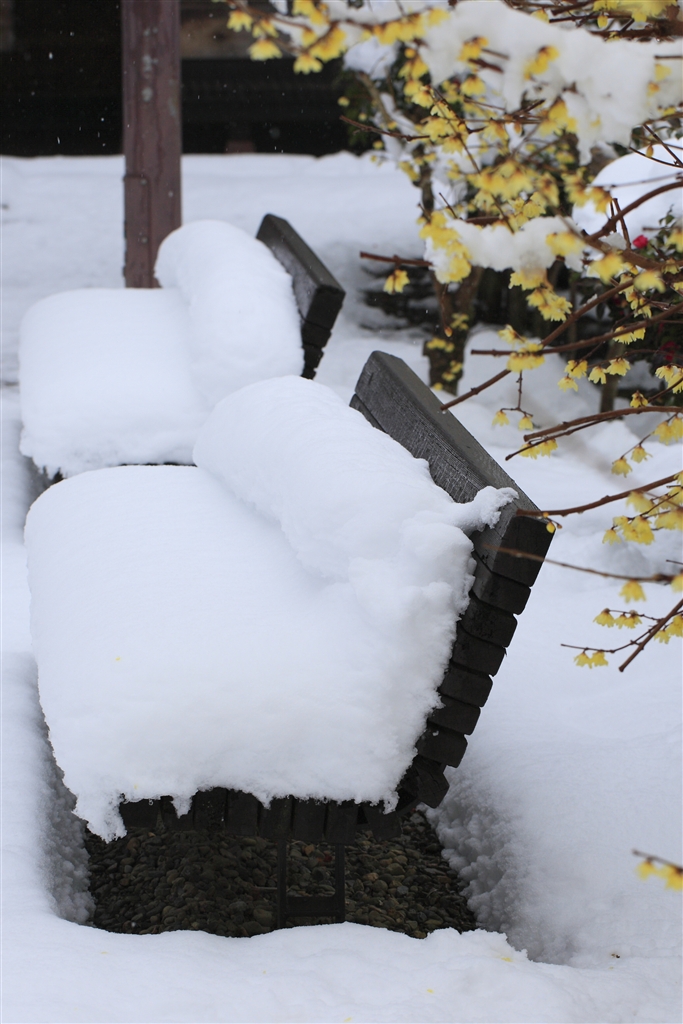 雪とベンチと蝋梅と(^^)