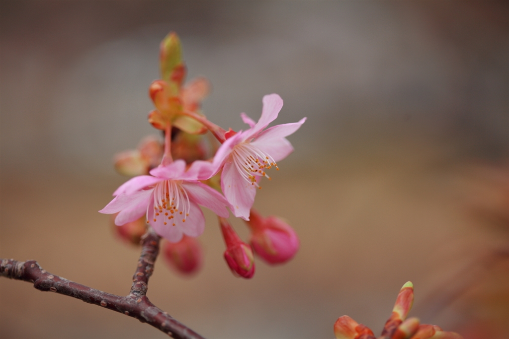 ちょっとしか咲いていない桜を