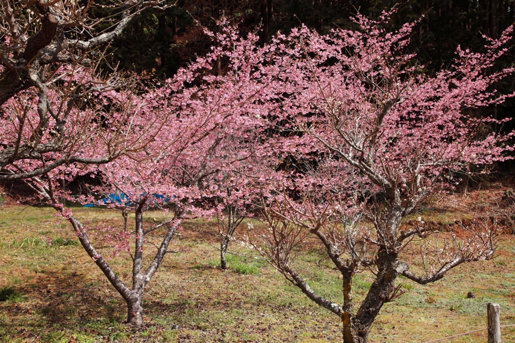 カンザクラ・・・背景のブルーシートが^^
