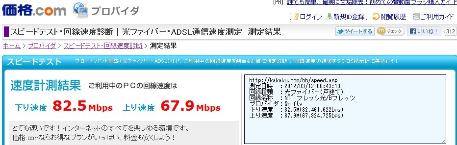 スピードテスト(光ファイバー) bluesea7さんのクチコミ掲示板画像1/1