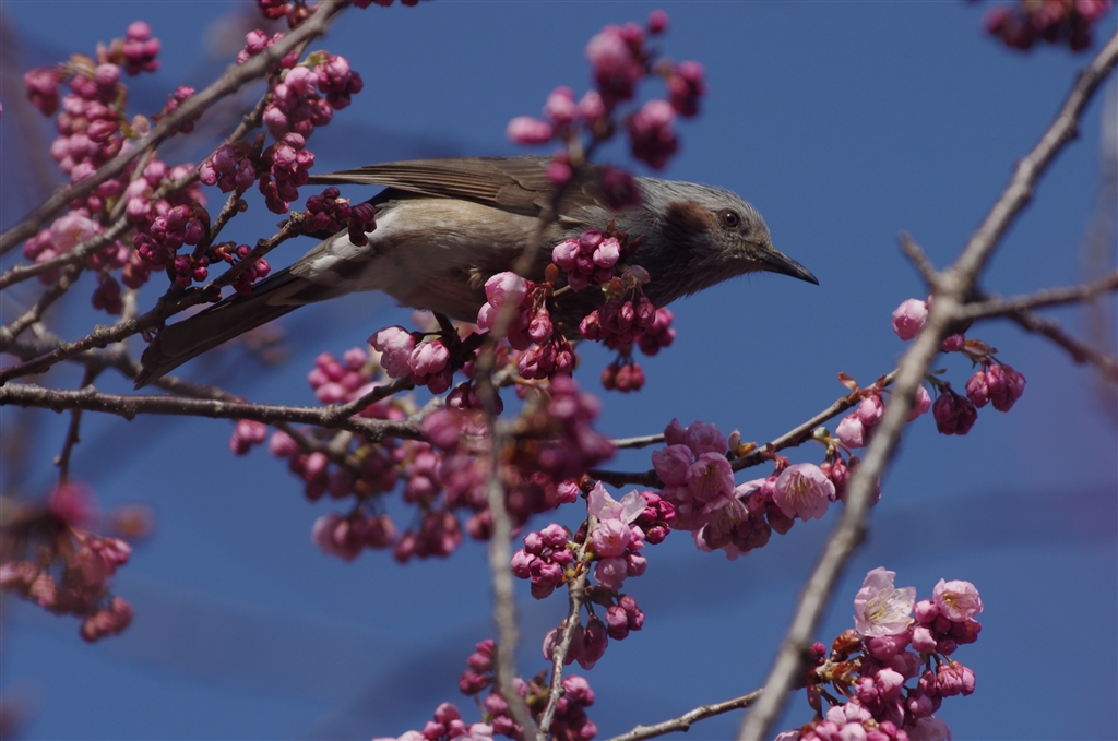 桜とヒヨドリ