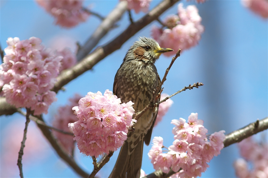 ヒヨドリ(寒桜が満開です)