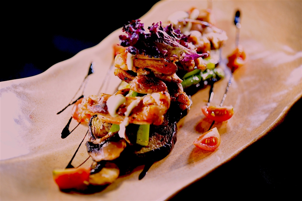 鳥の照り焼きも照り焼きバルサミコソースで気取ってます。