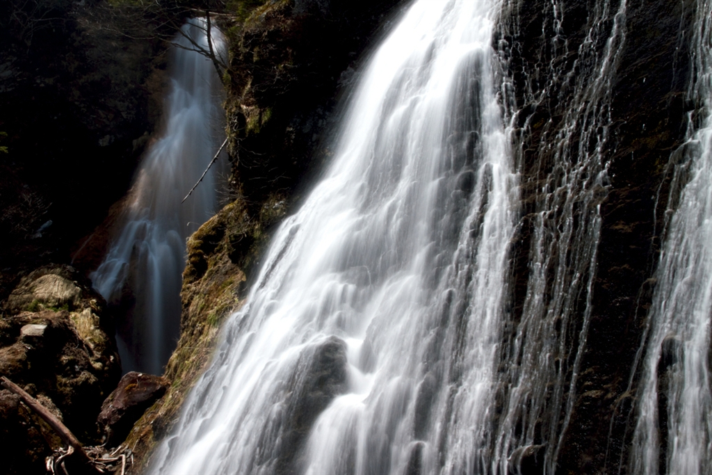 右の滝、下部左端を通して真ん中滝