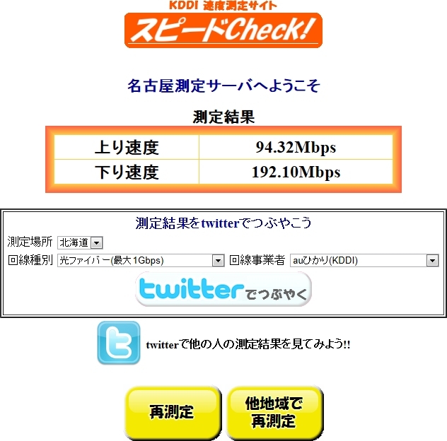 スピードテスト(光ファイバー)