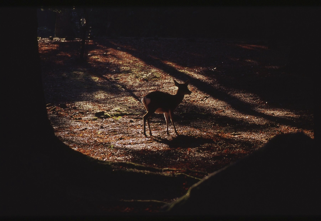 木漏れ日の中の鹿を狙いました