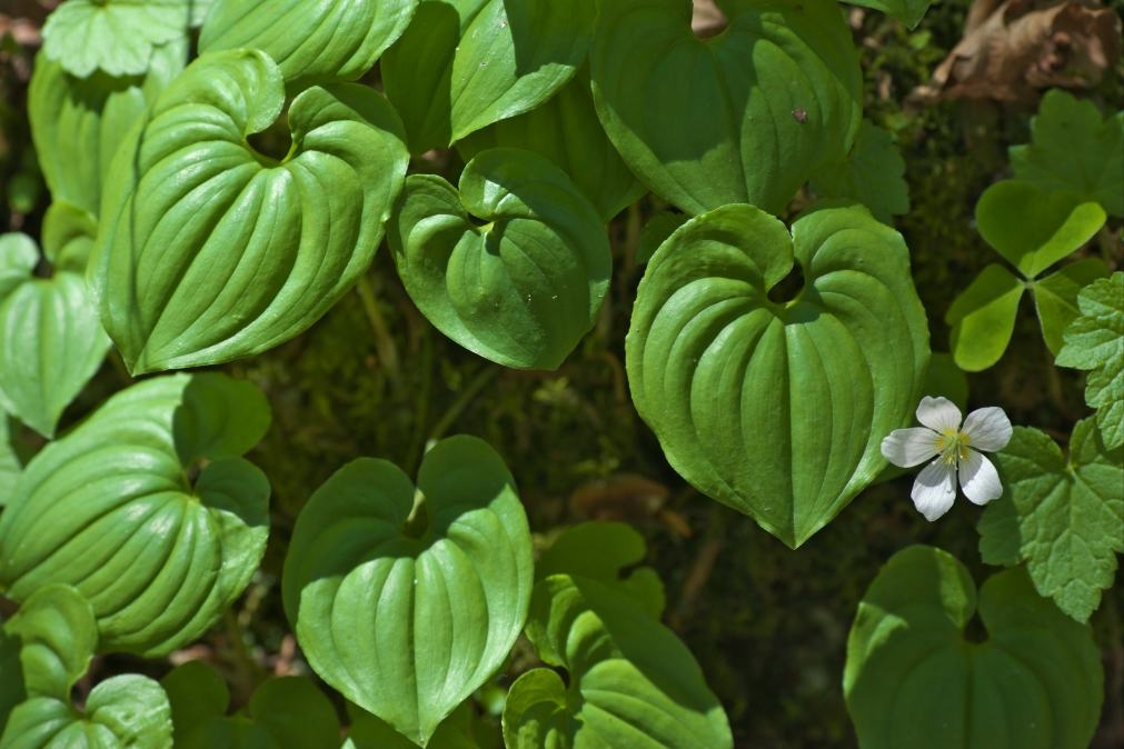 マイヅルソウと白い花一輪
