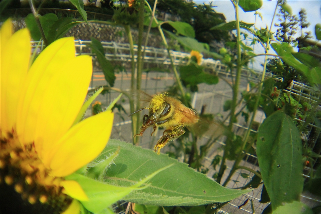 前から見たミツバチの顔は結構怖い!!