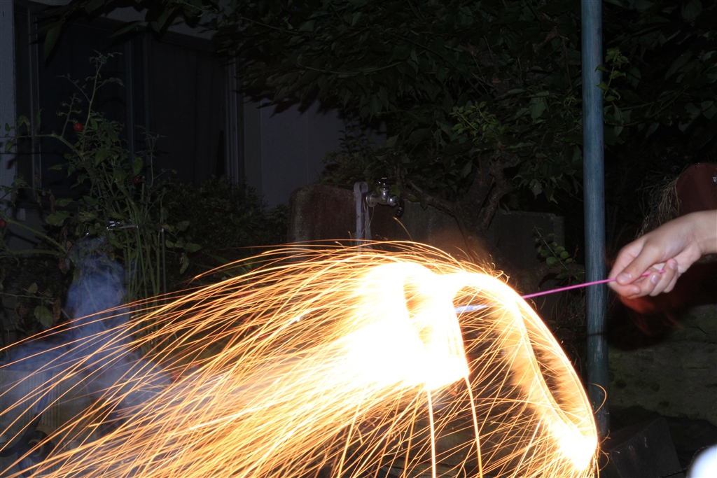 子供が遊んでる、花火です。