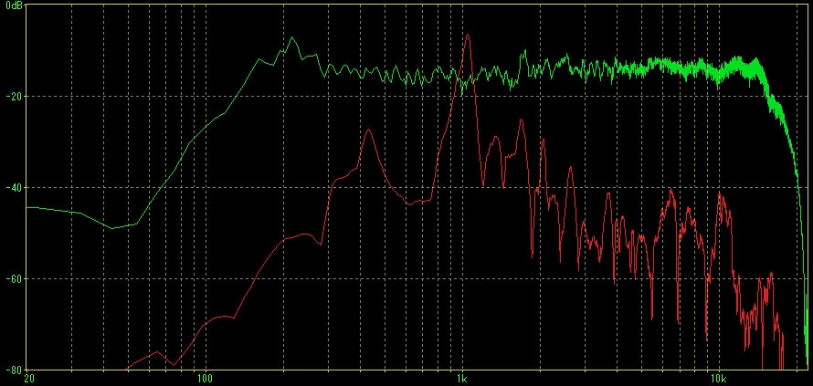 自作磁器SP(緑:軸上20cm、赤:側面の共振)