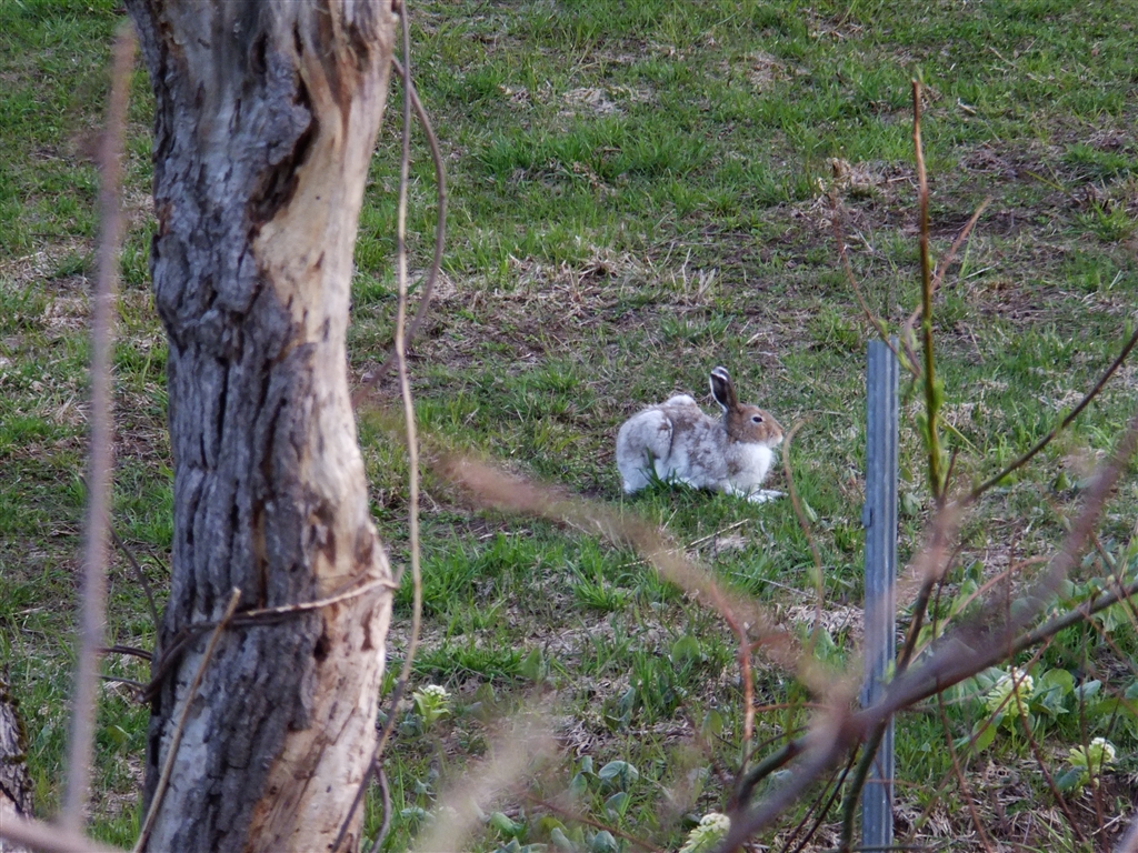 近くで息を潜めていた毛変わり中のウサギ