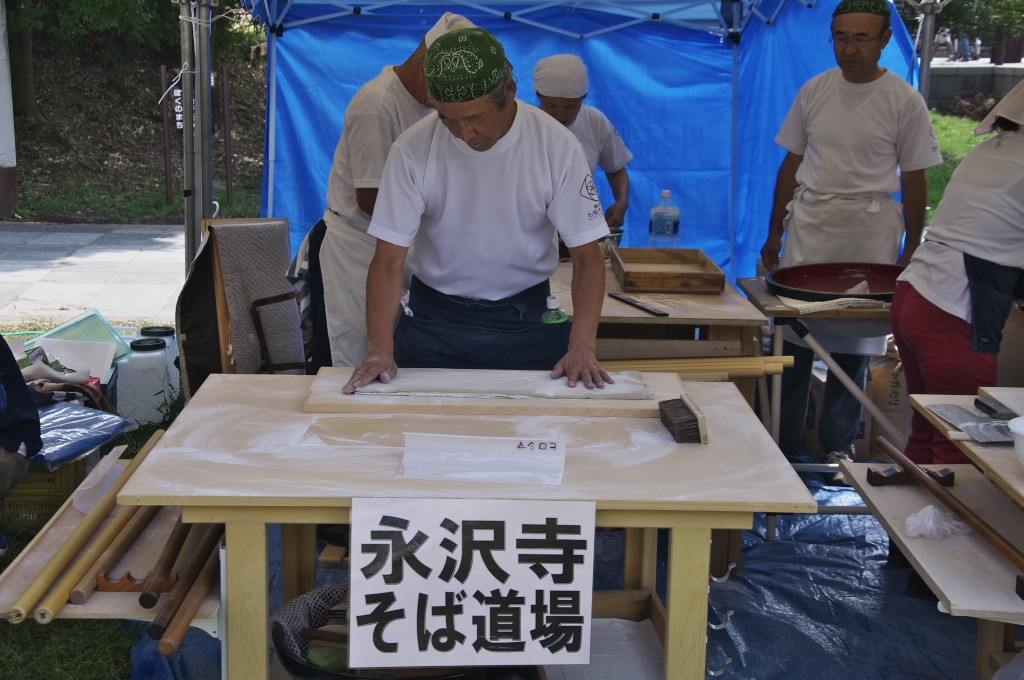 蕎麦打ち実演販売 道場だけあって有段者多数のようです