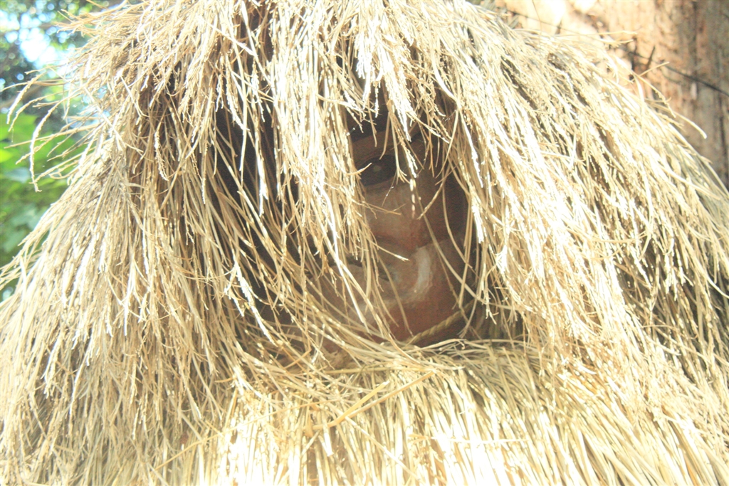 顔は暗くて見えないけど 相当怖い面をつけてます