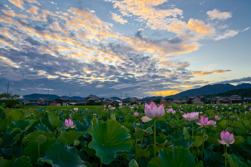 朝焼けに咲く古代蓮