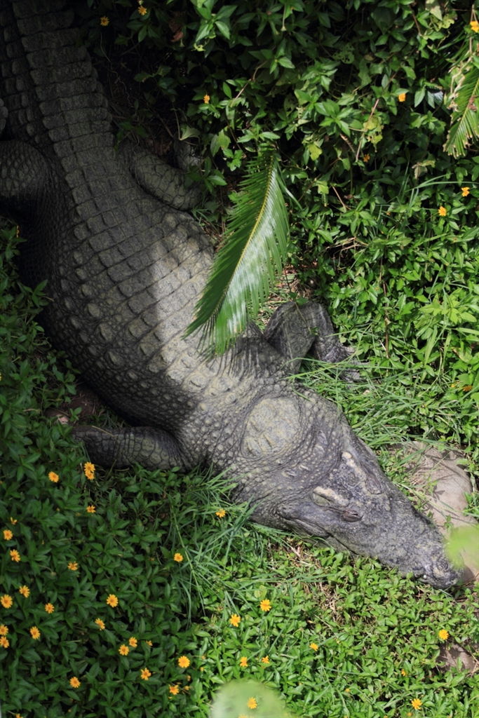 お花畑の中のワニ