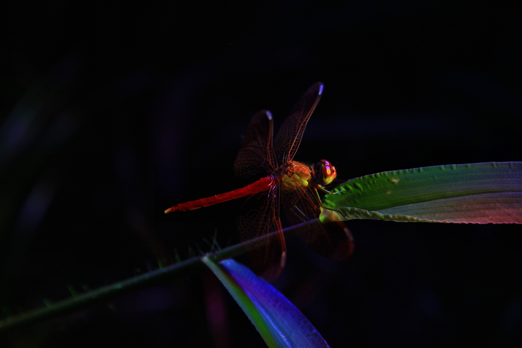《静》ミヤマアカネ(七色のLEDで断片的に照明した)