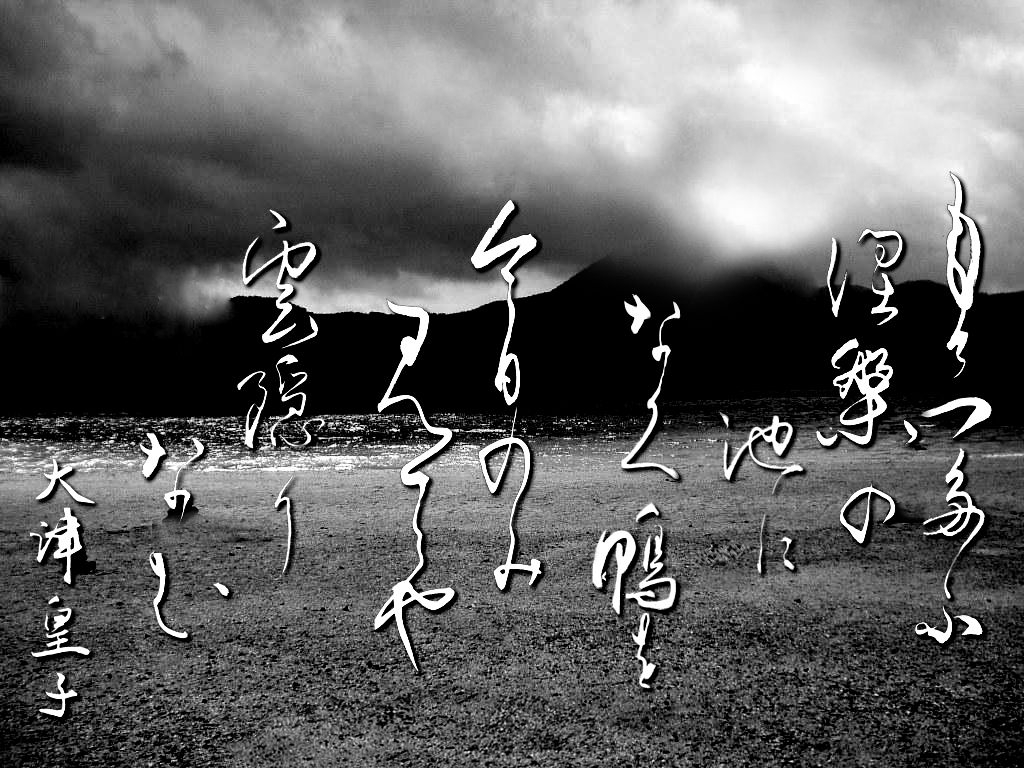 筆ペンで書いた大津の皇子の歌