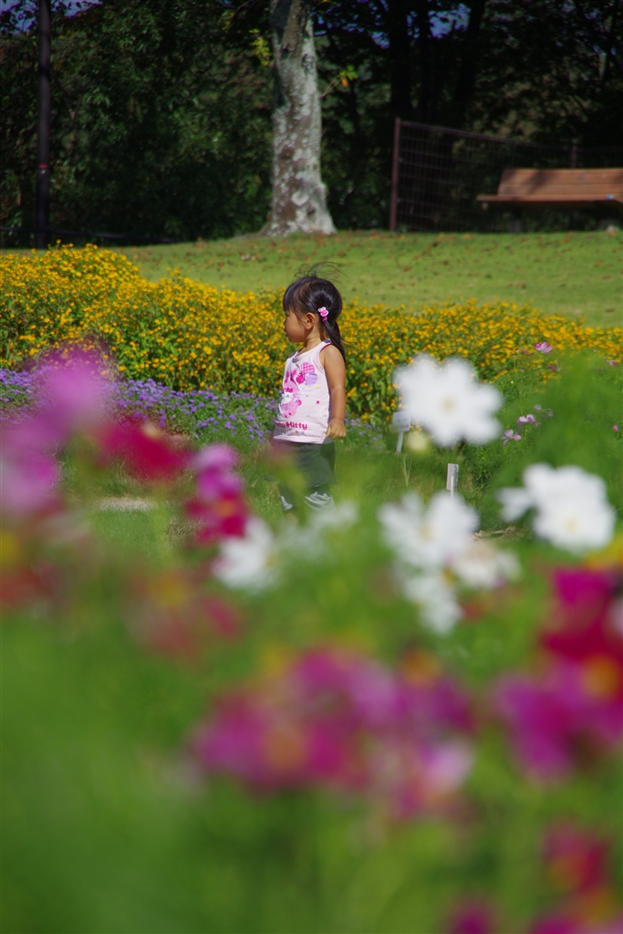 コスモス畑と娘