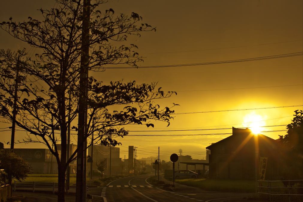 朝霧のある街の光景