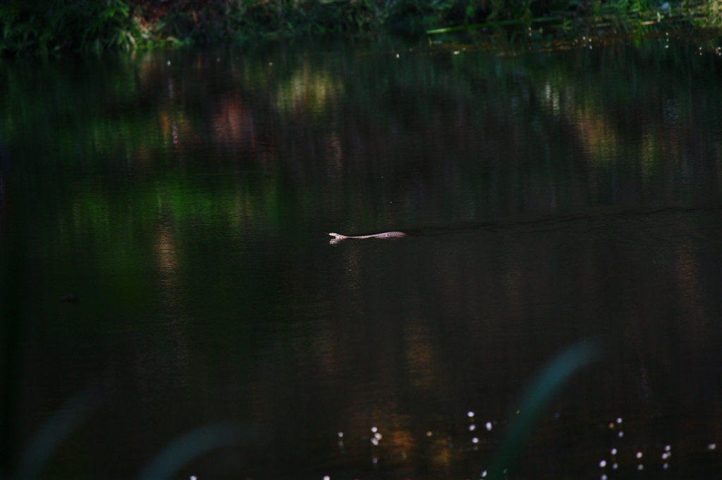 泳いでました。 拡大しますと、ヤマカガシみたいです。