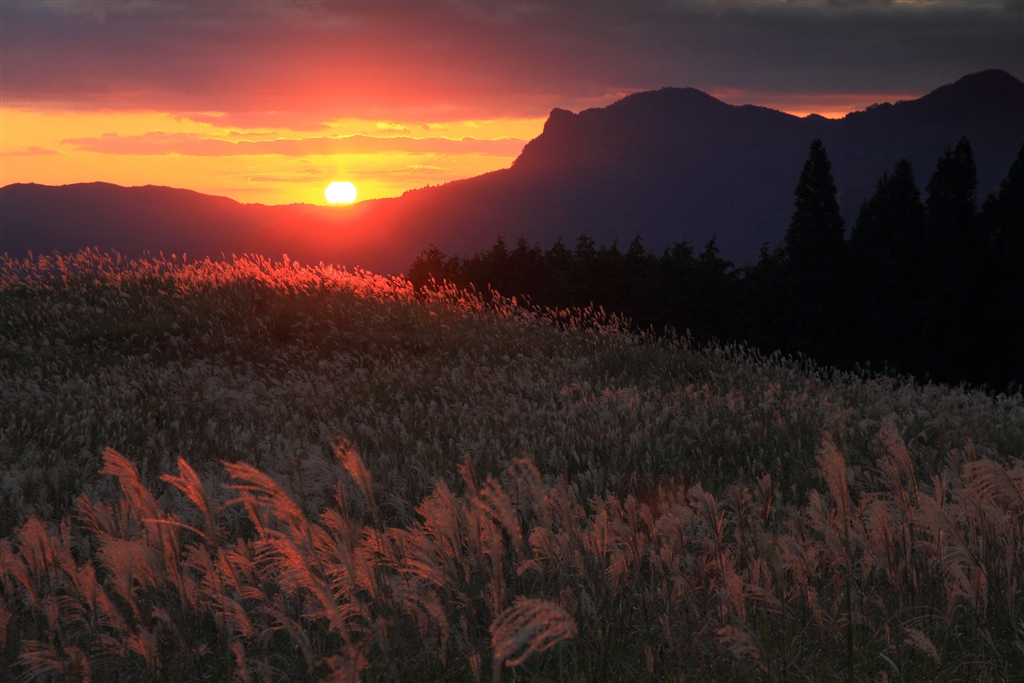 落日のすすきヶ原@曽爾高原(奈良県)
