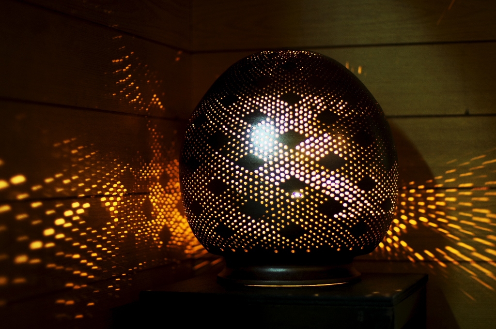 陶器とは思えない緻密な細工の陶製ランプシェード 高いよ