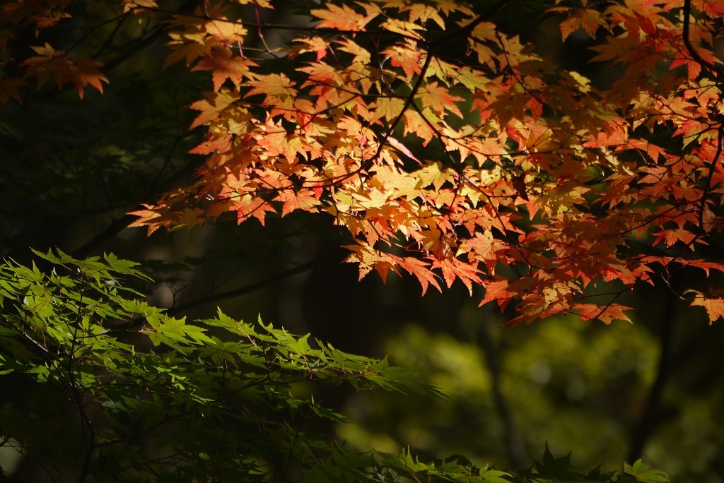オレンジと緑のもみじ
