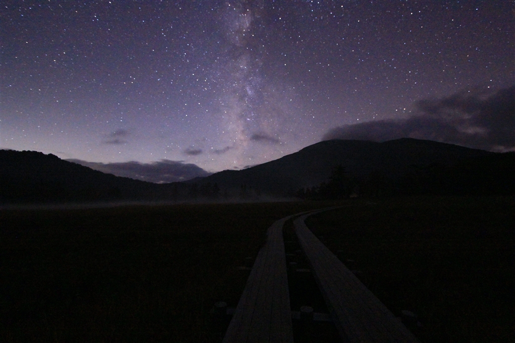 この時期の尾瀬ヶ原は午後6時を過ぎると真っ暗になる(X4ではこれが精一杯の画質)