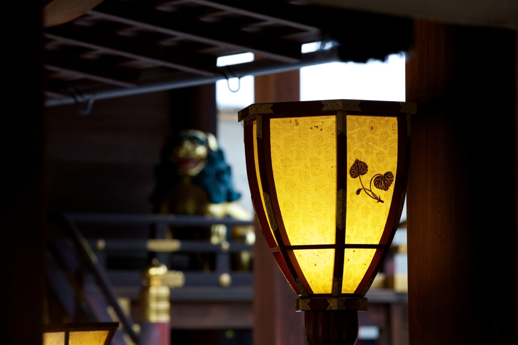 京都の下鴨神社:ぼんぼりとお獅子かな?