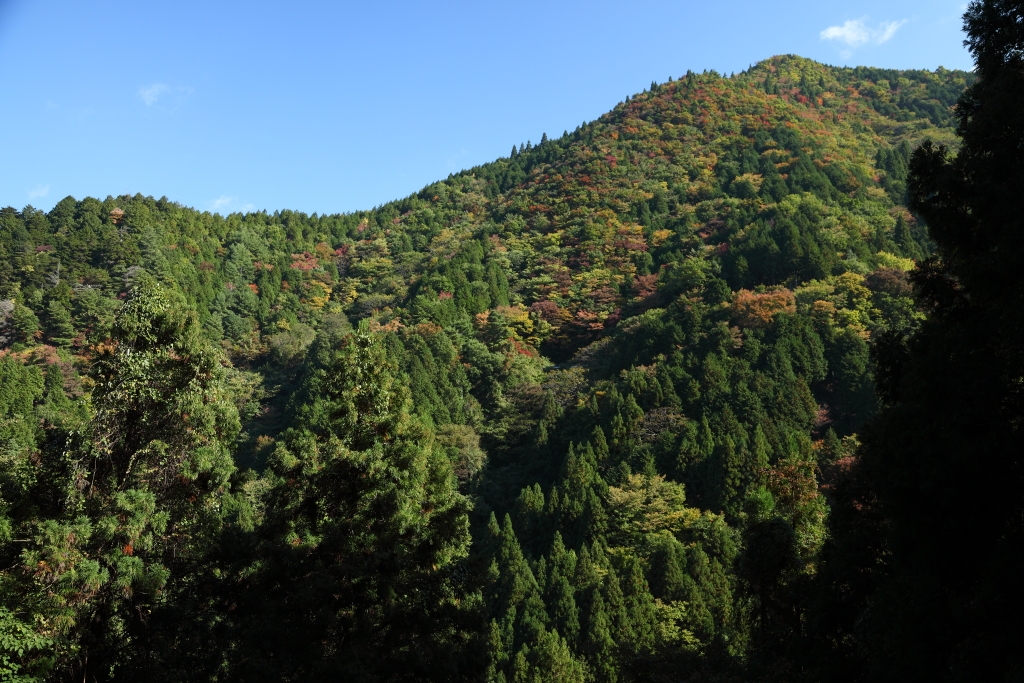 登る途中で一箇所だけ向かいの山が撮影できる