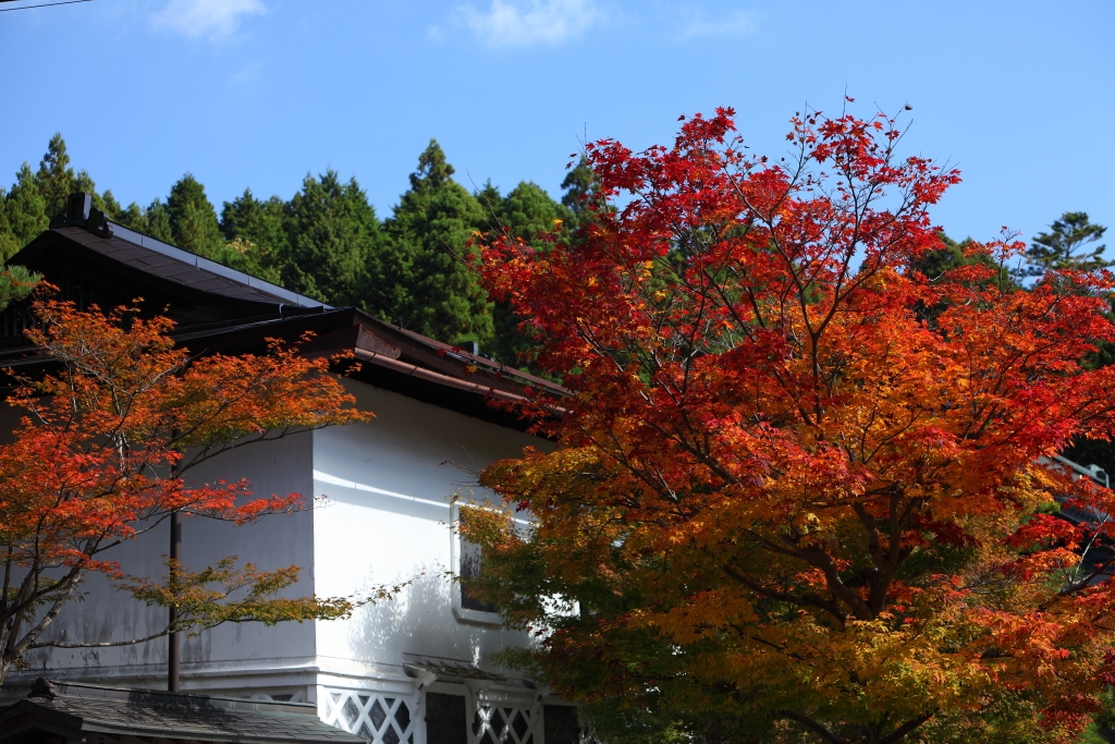 白壁と紅葉と青空