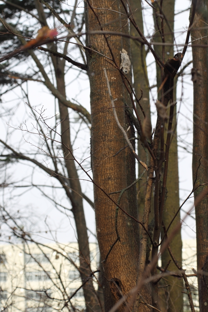巣穴から2-3m上にいます。後ろは高校の校舎です