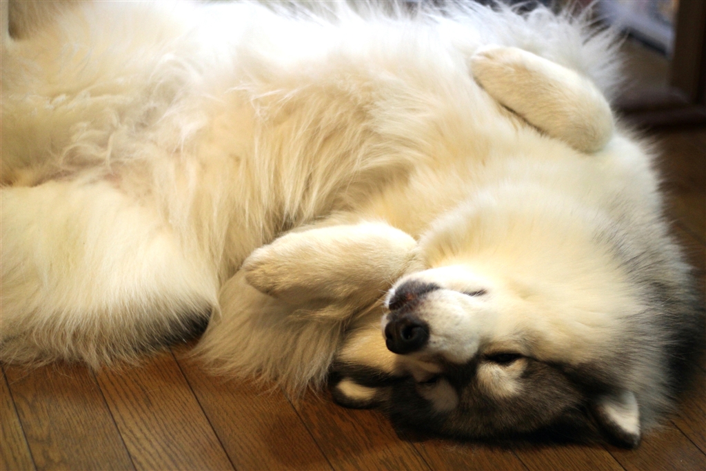 へそ天で爆睡・・・犬の寝姿ではないですね