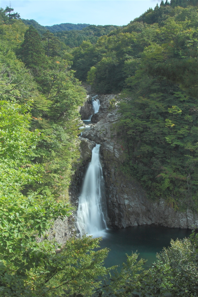 法体の滝 3段で落差57m 上流に甌穴があります。