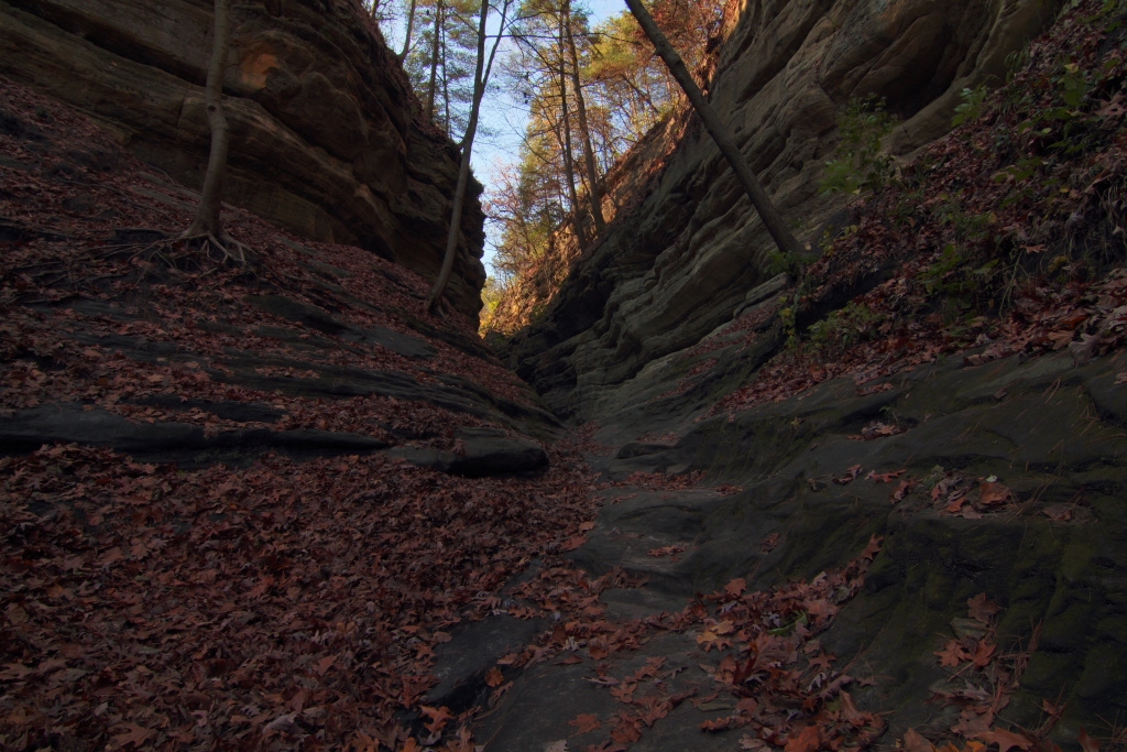 渓谷にて3枚撮ってHDR、枯れ葉の山・・・。