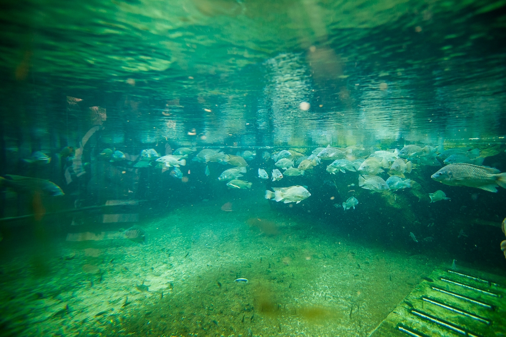 カバの池をガラス越しで これだけ和菓子です^-