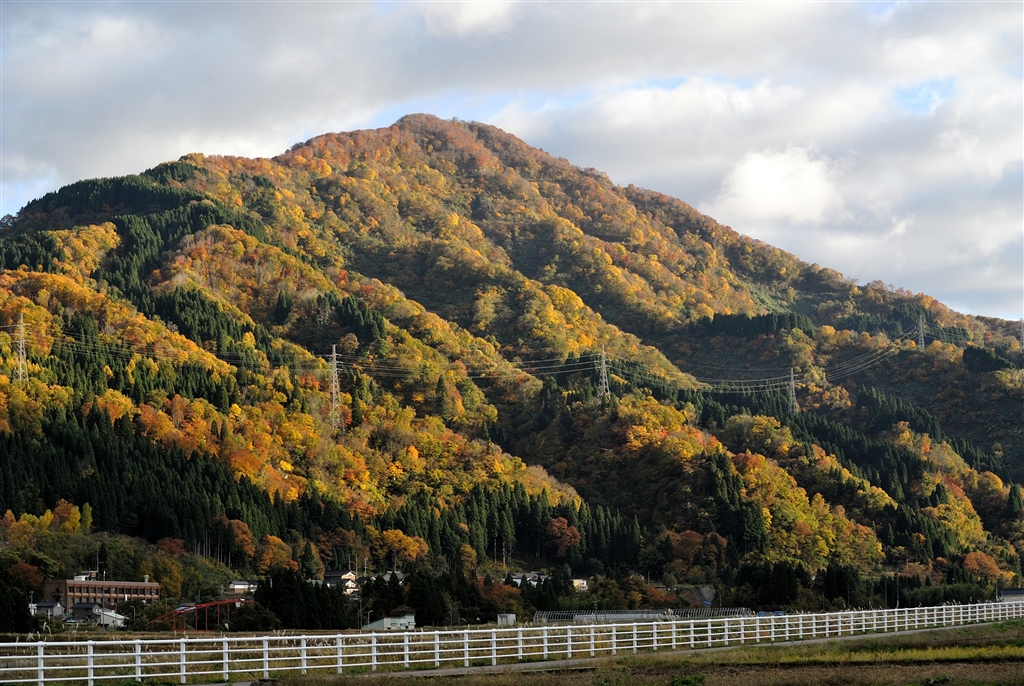 お向かいの里山も色づきました