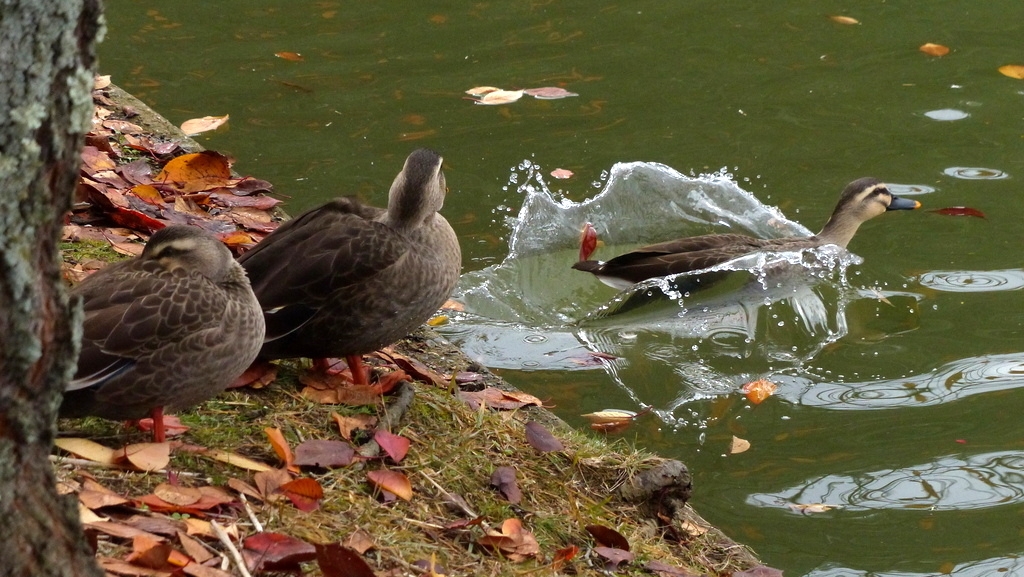 カルガモ選手、飛び込みました〜
