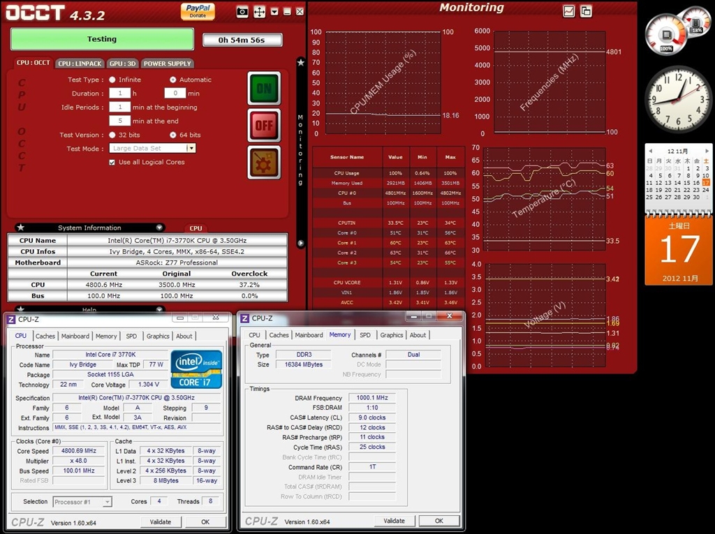 OCCT1時間Finish直前