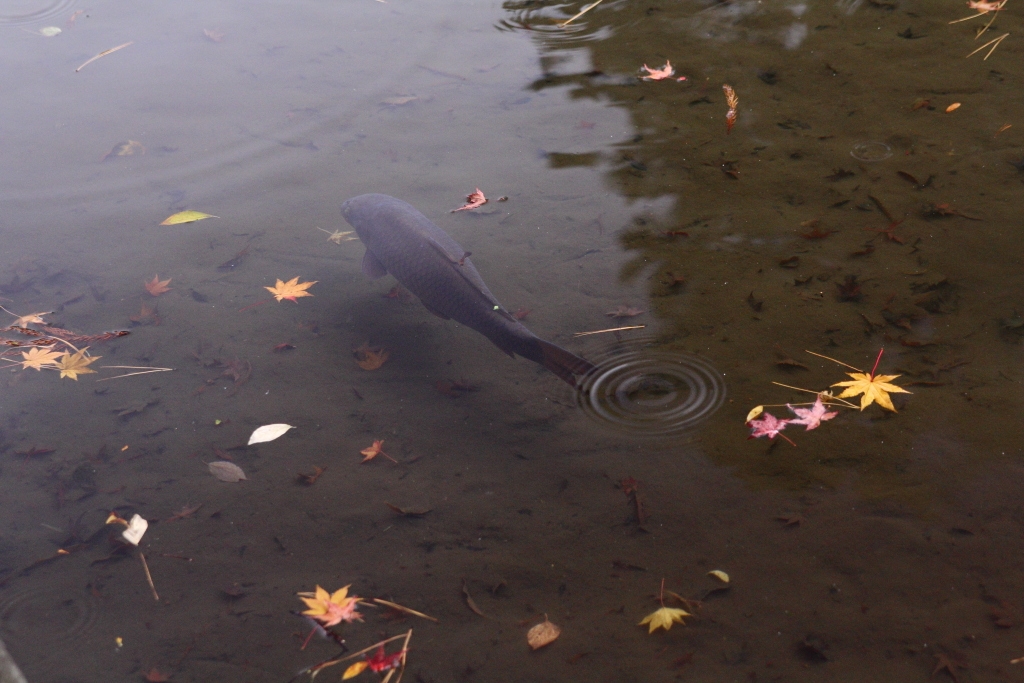落ち葉と鯉C−PL使用で。錦鯉とかでしたら良い画になるかも?