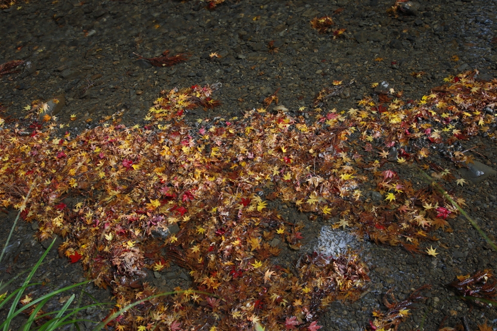 川を流れる落ち葉・・・きれいなんだけど