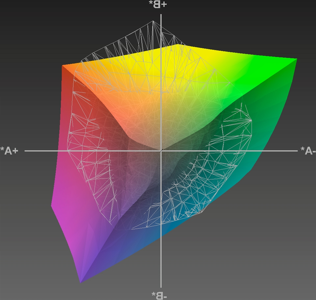 『AdobeRGBとMG6330との3次元比較画像(輝度0側から見た図)』 プリンタすべて DHMOさんのクチコミ掲示板画像2/4