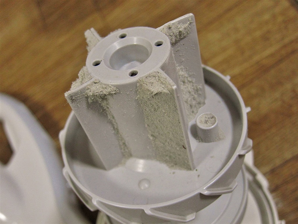 サイクロン式は 至るところ所に微細な塵が固まって付着している