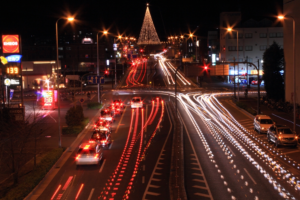 みのお市民ツリーのイルミ(ロータリーシャッターをやや低速で使用)