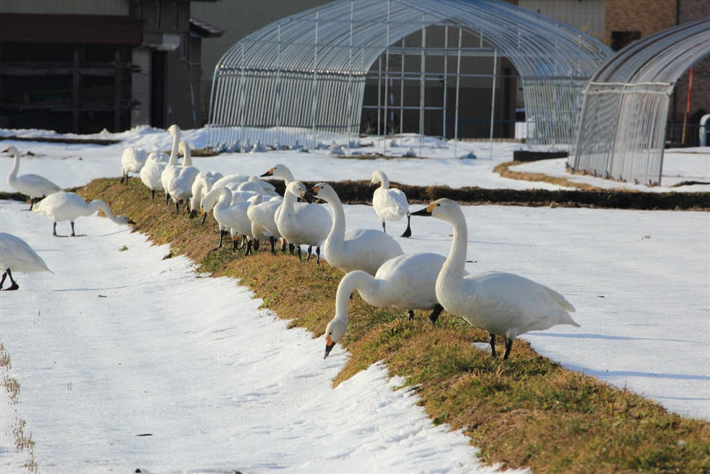 あぜ道に並んで